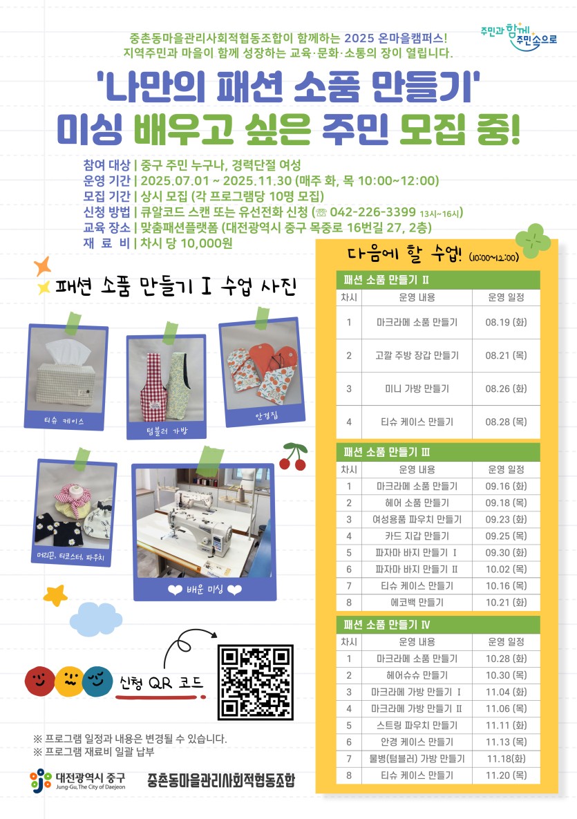 공지사항 2025 온마을캠퍼스 - 나만의 패션소품만들기 - Ⅱ